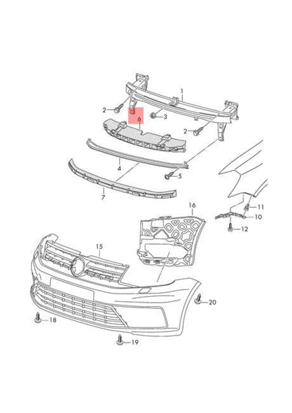 Véritable pièce de remplissage en mousse centrale VW Caddy 2K5807248B